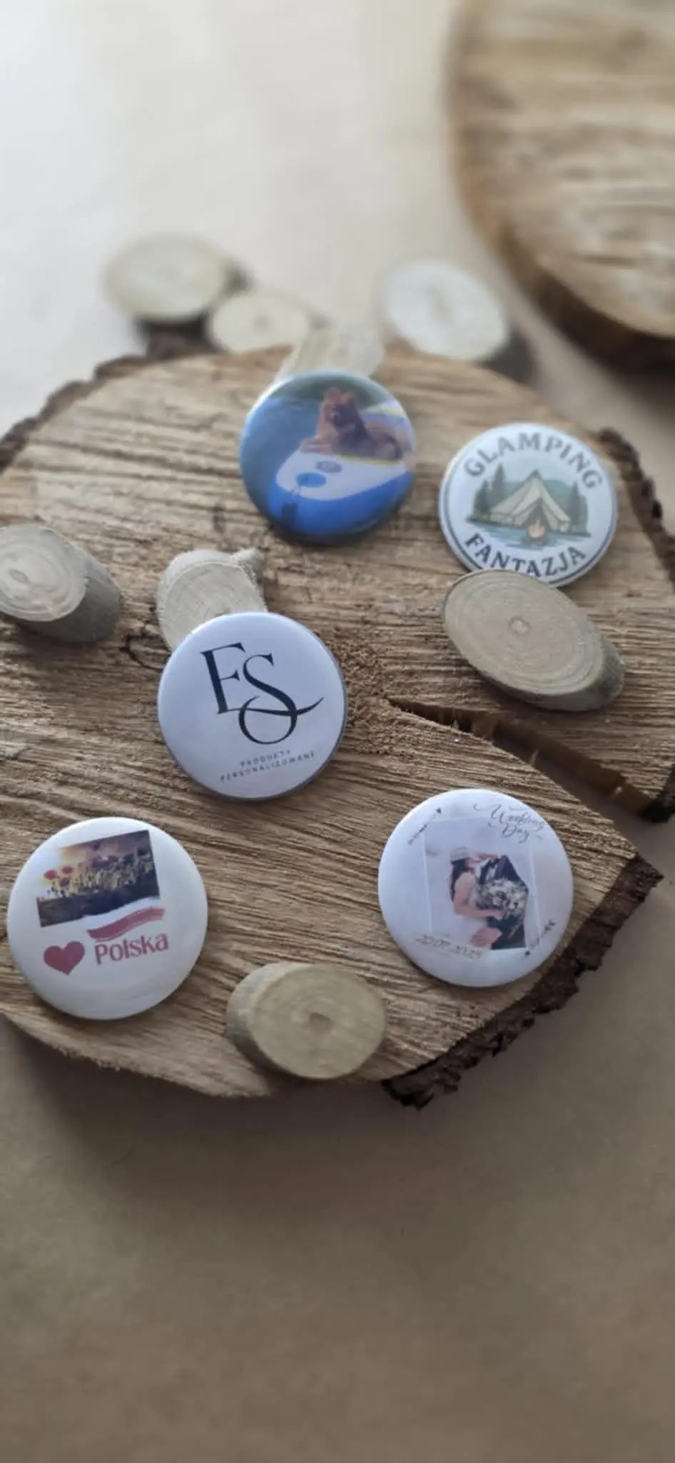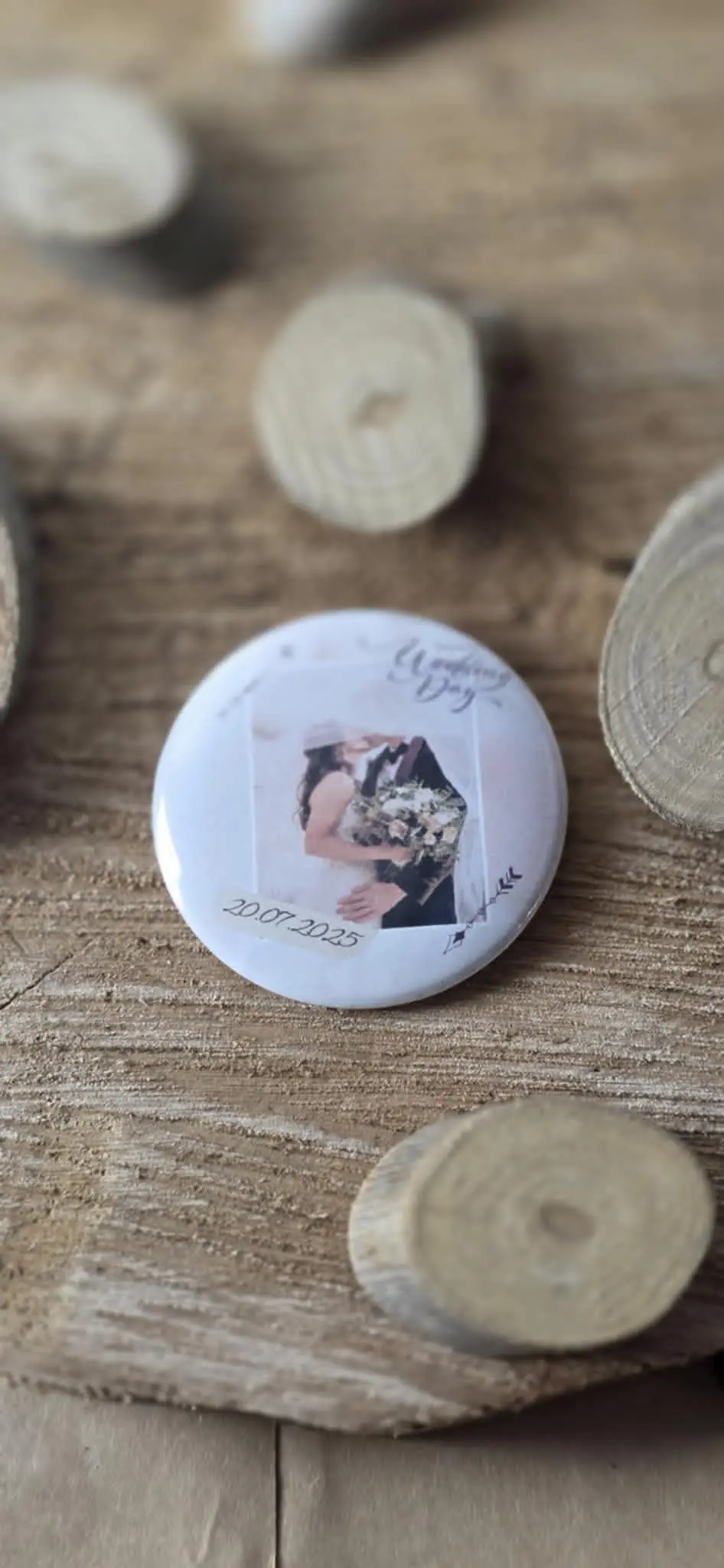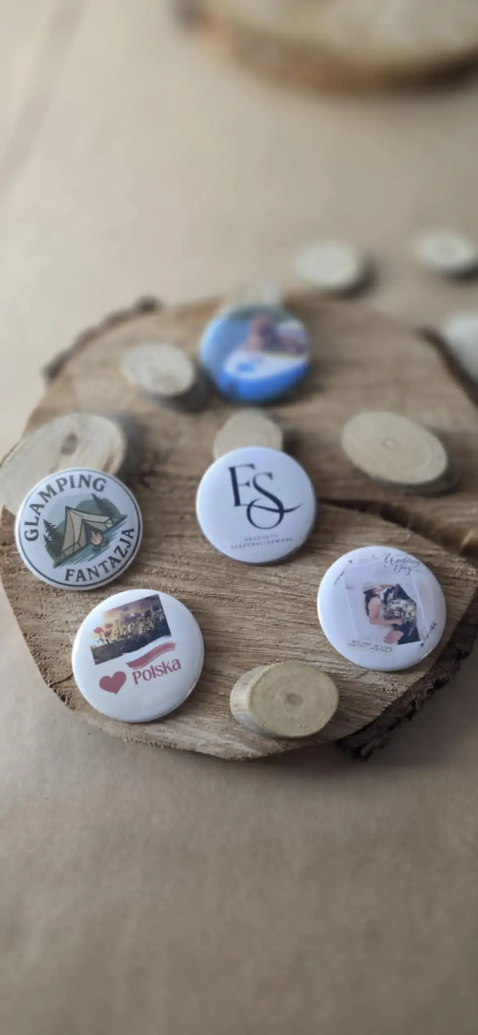 Personalizowane przypinki to idealny sposób na wyjątkowe podziękowanie dla gości – z imieniem, datą, zabawnym hasłem albo zdjęciem!