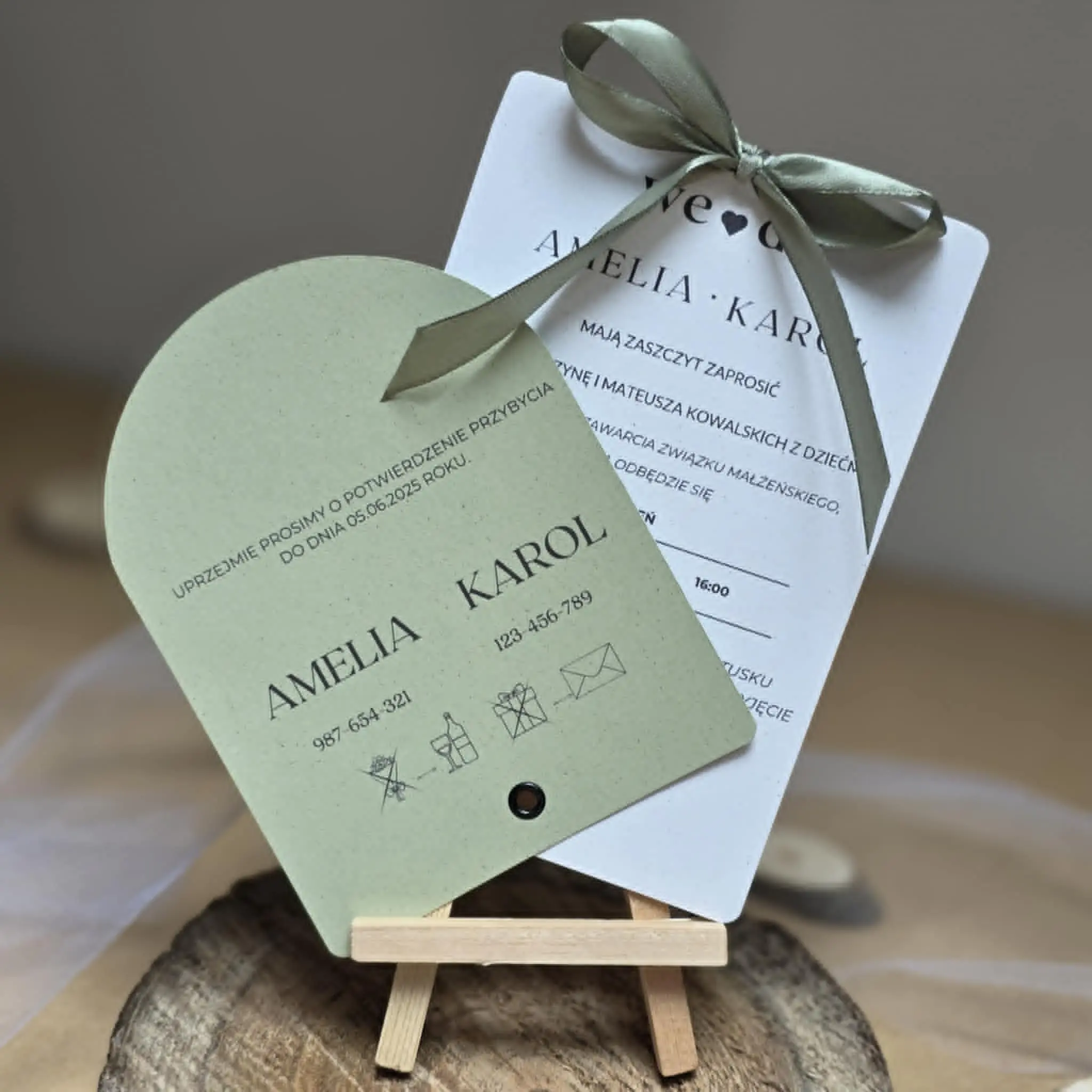 Zaproszenie spersonalizowane składane dwukartkowe ze wstążką: