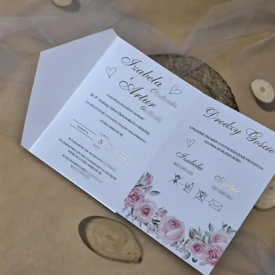 - Personalizacja Gratis (wpis imion i nazwisk gości) lub na życzenie klienta pozostawimy wykropkowane miejsce na własny wpis.