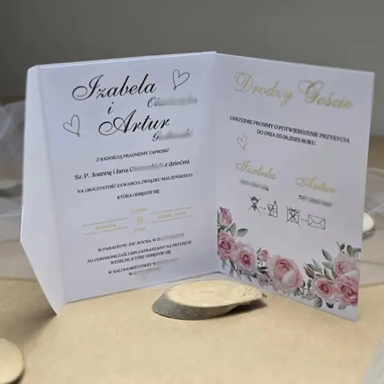 Kolor na wydruku zaproszenia może nieznacznie różnić się od zaprezentowanego na zdjęciu, mając na uwadze różne ustawienia monitorów.